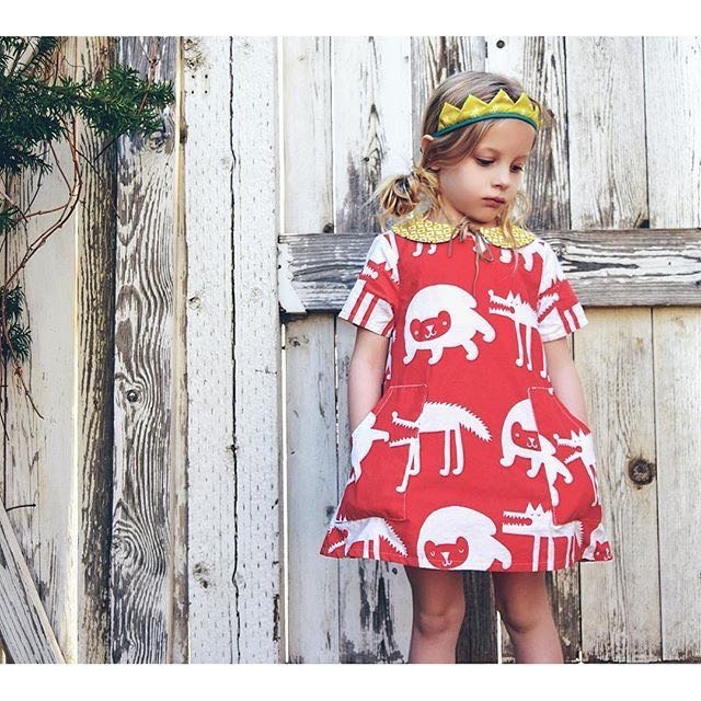 My Mum kindly gave my a piece of Orla Kiely Scribble Stem fabric, which I've teamed up with some light weight chambray to make these two unique little dresses.